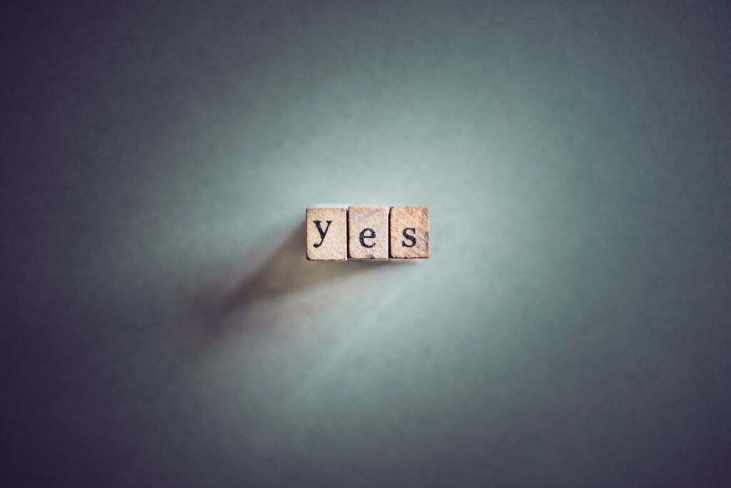 - Yes! According to Paul’s Romans epistle, all the promises of God are Yes! In Christ. That means that every promise God has ever made is in some way availed to believers by virtue of our belonging to Christ. Every blessing offered by God is ours because of Jesus. For married couples, here are a few to receive: No weapon formed against us shall prosper (Isaiah 54:17). As we walk, stand and sit in a life of commitment to God, everything we do will prosper (Psalms 1:1-3). God is present and for us in whatever trouble comes our way (Psalms 46:1). Spouses who say yes to Jesus and each other have God’s yes, too.